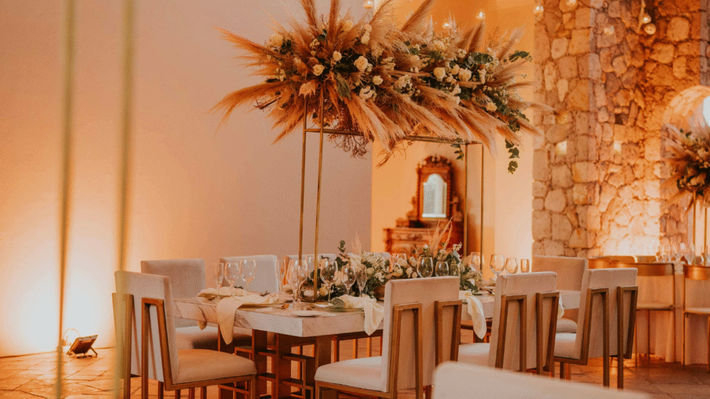 Creamos ambientes que enamoran: delicados, sofisticados y llenos de armonía. Nuestro sello combina flores frescas, iluminación cálida, texturas naturales y una dirección artística que convierte cualquier espacio en un escenario especial.